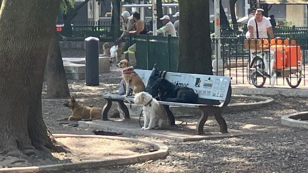 I was back in Mexico City over the weekend to look around and to see a play, and I stayed in a hotel in the neighborhood of Condesa. On my first trip to Mexico we had wandered through Condesa, and I thought it was maybe the most charming neighborhood I’d ever seen; parks, tree-lined streets, cafes, dogs, art moderne buildings. I pictured living in one of those 1930s apartment houses, with a little balcony overlooking a circular intersection with a fountain at the hub.