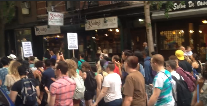 So I went to the Stonewall, and I posted those pictures earlier, and then I peeled off and followed the march for the trans day of action, and joined in, playing my role as the least queer person in the line. “Do you know what this march is for?” my new acquaintance Julia asked me when I asked if I could fall in with them. And then met up with Can Dice and the Gabriela folks, and took pictures and had dinner.