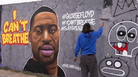 George Floyd mural in Berlin by Eme Freethinker; photograph by Abdulhamid Hosbas/Anadolu Agency/Getty Images, at https://www.bbc.com/culture/article/20201209-the-street-art-that-expressed-the-worlds-pain