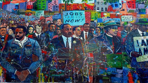 Painting of Martin Luther King, Jr., and other civil rights leaders by Louis Delsarte, from the Civil Rights Movement Archive at https://www.crmvet.org/images/imgart2.htm